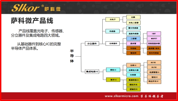 Slkor's technical team hails from Tsinghua University. It is a national high-tech enterprise that developed SiC power devices relatively early and has grown into a company integrating R&D, design, sales, and application technical services. Its corporate culture is inclusive, open, and innovative. The "SLKOR" brand has gained international recognition and reputation, with market share continuously rising. It has obtained certifications including ISO9001 system, RoHS, REACH, and California Proposition 65. Slkor Semiconductor has R&D institutions in Beijing and Suzhou, with a lab and central warehouse attached to its Shenzhen headquarters. Main product series include diodes & transistors, power devices, and power management ICs. It is gradually developing new products like Hall sensors, ADCs, BMS, high-speed optocouplers, and passive crystals, applied in industries such as smartphones, laptops, robotics, power tools, connected vehicles, 3C digital products, and the Internet of Everything (IoE), advancing hand in hand with over ten thousand global partners!