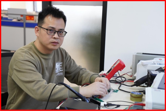 Engineer Xiong testing product parameters for Slkor Semiconductor