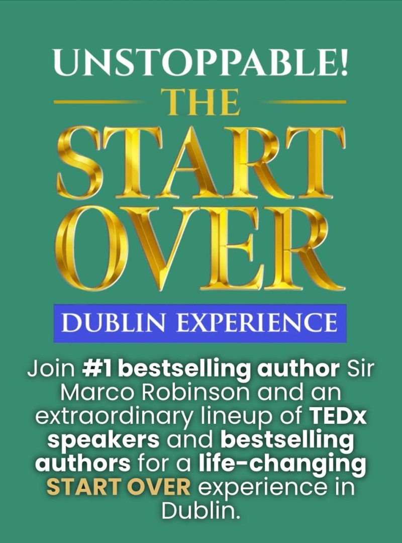 Entrepreneur, international speaker, and Channel 4 television personality Marco Robinson is bringing his powerful Start Over Movement to Dublin for a live event designed to inspire entrepreneurs, leaders, and individuals ready to rebuild their lives after setbacks.