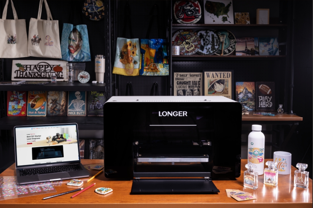 Compared with traditional production methods, Longer laser cutters and engravers, along with UV DTF printers, significantly simplify the manufacturing process. The B1 series offers excellent cutting capability and stable performance, easily cutting materials such as wood, acrylic, and stainless steel while maintaining fine detail. It also features a large working area of 450 × 440 mm. The ePrint printer adopts a dual-head UV printing architecture with 12 ink channels, delivering speeds up to six times faster than traditional single-head machines. Combined with an AI-driven intelligent workflow, the machine provides a more efficient and intelligent printing experience that enhances overall creative production efficiency.