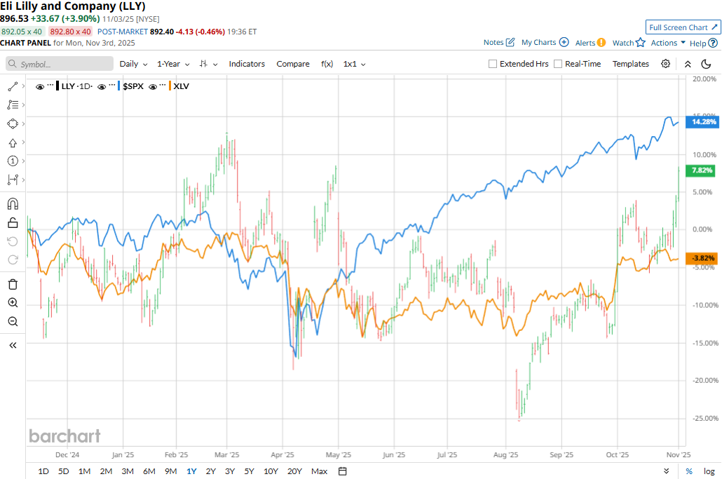 Narrowing the focus, LLY outperformed the Health Care Select Sector SPDR Fund’s (XLV5% uptick in 2025 and 2.2% decline over the past year.