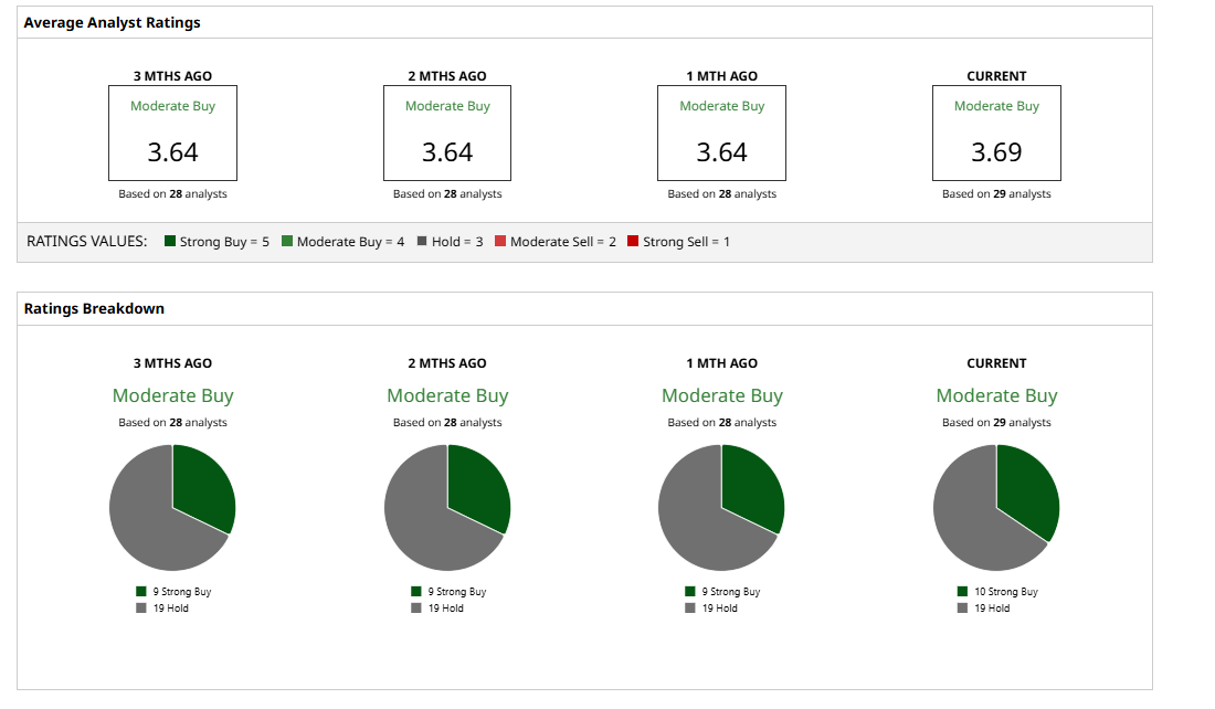 Wall Street analysts have a favorable view of YUM’s stock, awarding it with a “Moderate Buy” rating overall. Of the 29 analysts rating the stock, 10 analysts have rated it a “Strong Buy,” while 19 analysts are playing it safe with a “Hold” rating. The consensus price target of $163.25 represents 10% upside from current levels, while the Street-high price target of $185 indicates 25% upside.