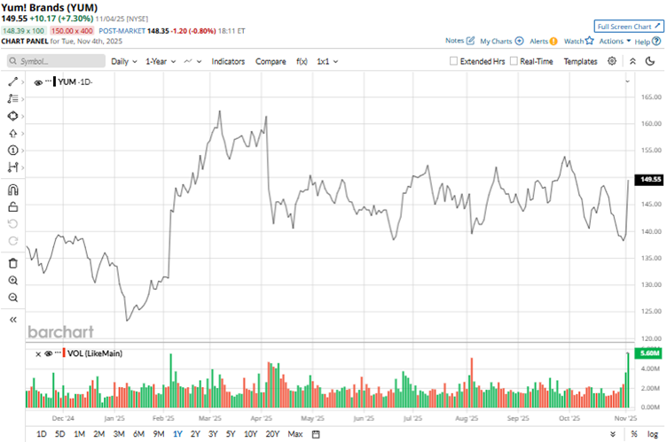 Yum! Brands stands as a leading force in the global quick-service restaurant industry, overseeing well-known chains such as KFC, Pizza Hut, Taco Bell, and the Habit Burger Grill. Its expansive operations rely primarily on franchising, with tens of thousands of outlets located in over 155 countries and territories. Renowned for its aggressive growth strategy, YUM opens new restaurants frequently, adding more than 4,500 units worldwide in 2024 alone.