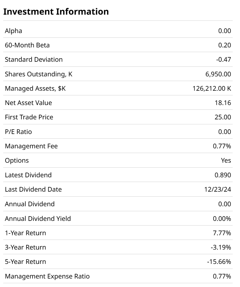 The chart also reflects distributions, but if we look back to early 2025, we see there’s potential for a nice cash alternative here. That was a more than 10% rally for UDN last time around. And as shown below, its beta is low, as is its correlation to the U.S. stock market. Both good diversification signals.