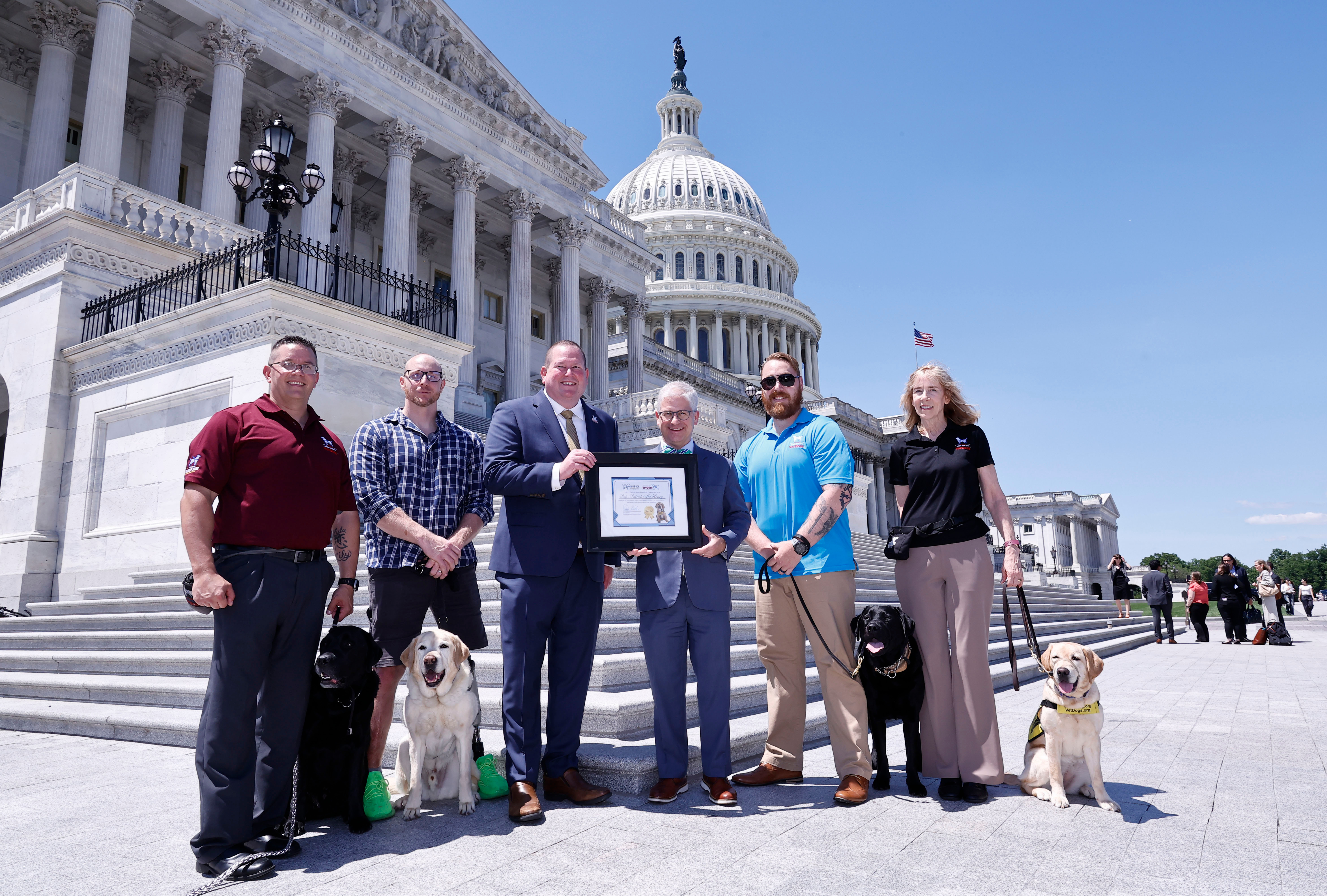 The Act, originally introduced to the 118th Congress in February 2023 by Rep. Patrick McHenry (R-NC), chairman of the House Financial Services Committee, and Rep. Jim McGovern (D-MA), was later introduced in the Senate in March 2023 by Senators Ted Budd (R-NC), Thom Tillis (R-NC), Mark Kelly (D-AZ), and Tammy Duckworth (D-IL). Recognizing the invaluable contributions of working dogs to society—spanning detection, military service, therapy, and assistance roles—the legislation gained strong support from Senators Chuck Schumer (D-NY) and Kirsten Gillibrand (D-NY), as well as the entire Long Island delegation, where America’s VetDogs is headquartered.