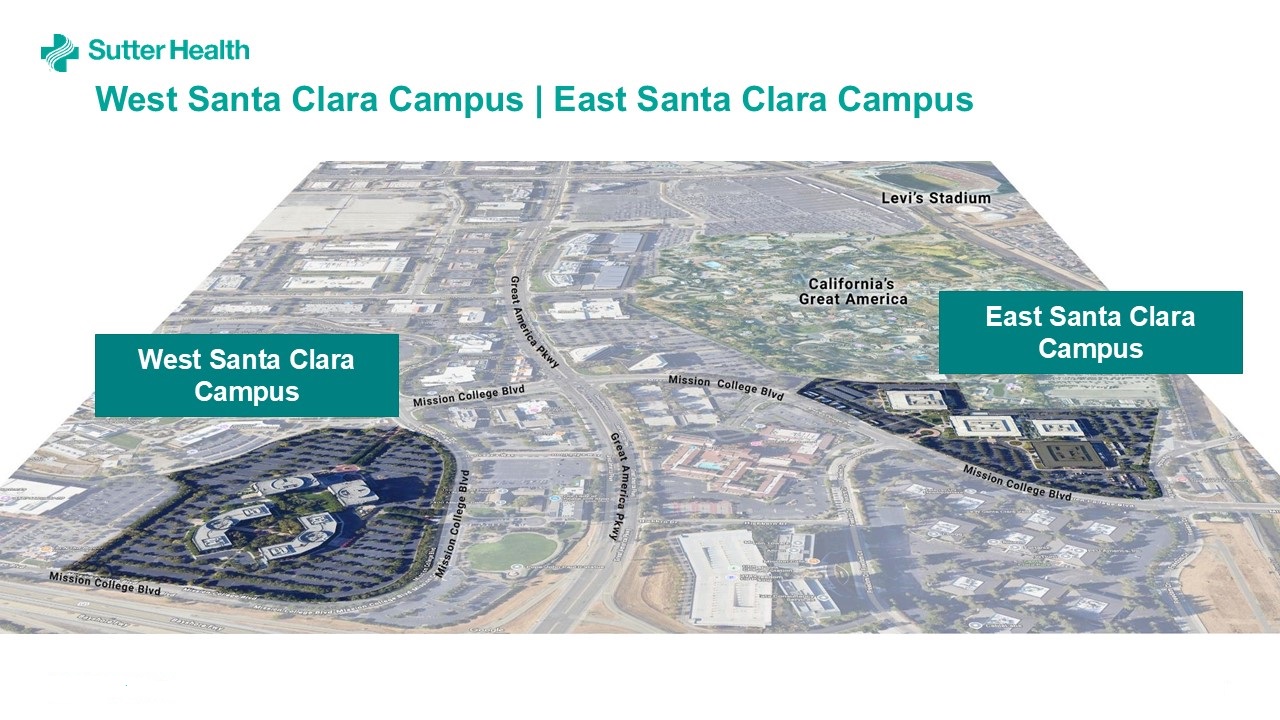 Sutter West Santa Clara Campus (approximately 700,000 square feet): The west campus will focus on specialty services and will feature four destination centers of excellence in: