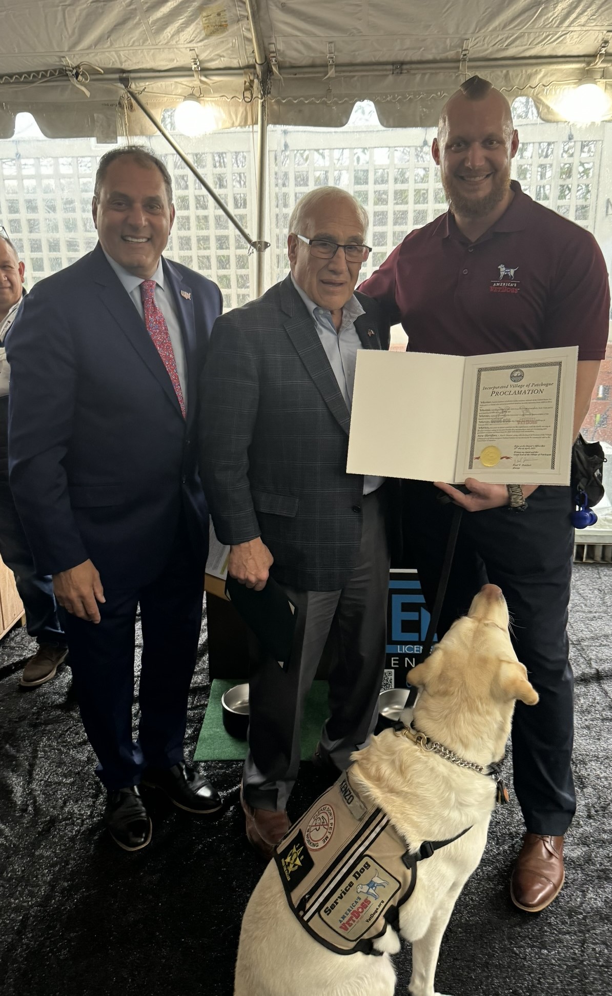 The backyard dog dens were presented to the America’s VetDogs program graduates during a special event held during the Long Island Builders Expo on Thursday, April 11th at the Long Island Hilton in Melville. More than 100 exhibitors showcased the newest and best products for home building and remodeling. Officials from municipalities across Long Island were also on-hand to answer questions and guide homeowners with current or future projects.