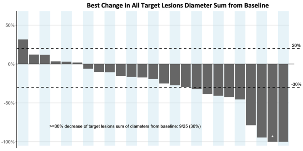 - 48.0% (12/25) all target lesions response (≥ 30% change in target lesion sum of diameters; see below)