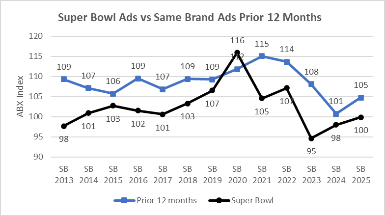 - Super Bowl Ads vs Same Brand Ads Prior 12 Months