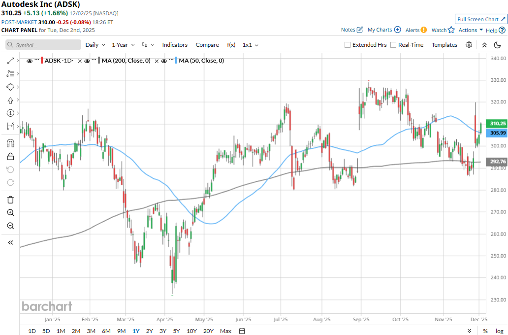 Meanwhile, Autodesk has lagged behind its peer ANSYS, Inc.’s (ANSS11% surge in 2025 and 13.3% gains over the past 52 weeks.
