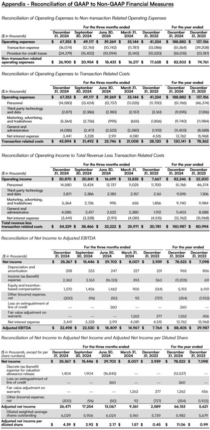- Transaction related costs exclude significant expenses such as personnel, general and administrative, and third-party technology and data, which have been, and will continue to be for the foreseeable future, significant recurring GAAP expenses.
