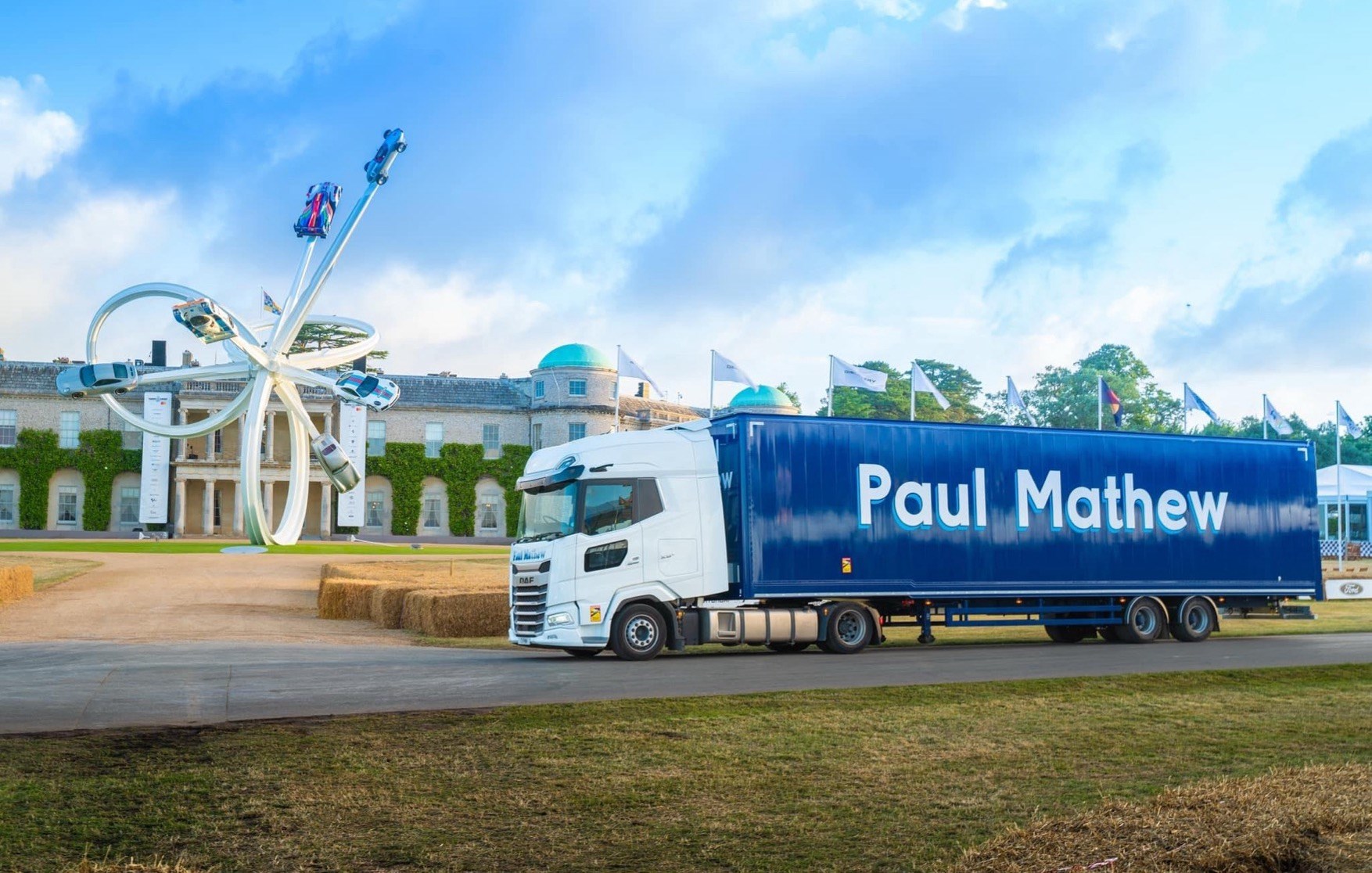 A Paul Mathew Transport vehicle in front of an automotive installation. The company, a leading player in UK logistics, was recently acquired by Eyal Kaplan through Novastone Capital Advisors.